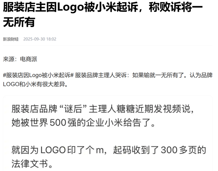 2025年10月1日消息,据科技媒体报道,近日,一家广东服装品牌“谜后”的主理人,发布视频称弘盛配资,因为品牌logo中含有“M”,被小米公司起诉,还收到300多页法律文书,被要求天价赔偿,如果输就一无所有。